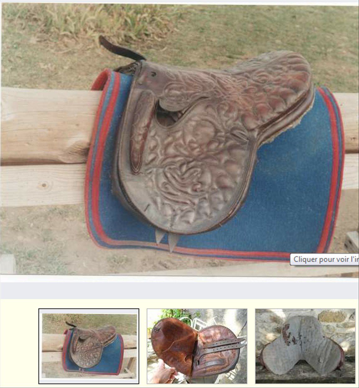 | Dire merci | Si vous aimez les selles Camargue Anciennes, permettez moi de vous faire plaisir en vous montrant la mienne. [url=https://www.1cheval.com/membre/services/photos/images/145695.jpg] ![]() [/url] [url=https://www.1cheval.com/membre/services/photos/images/145698.jpg] ![]() [/url] [url=https://www.1cheval.com/membre/services/photos/images/145699.jpg] ![]() [/url] Celle-là, c'est une vraie de vrai mais qui a vécu... ce qui en fait, à mes yeux, toute sa beauté. |