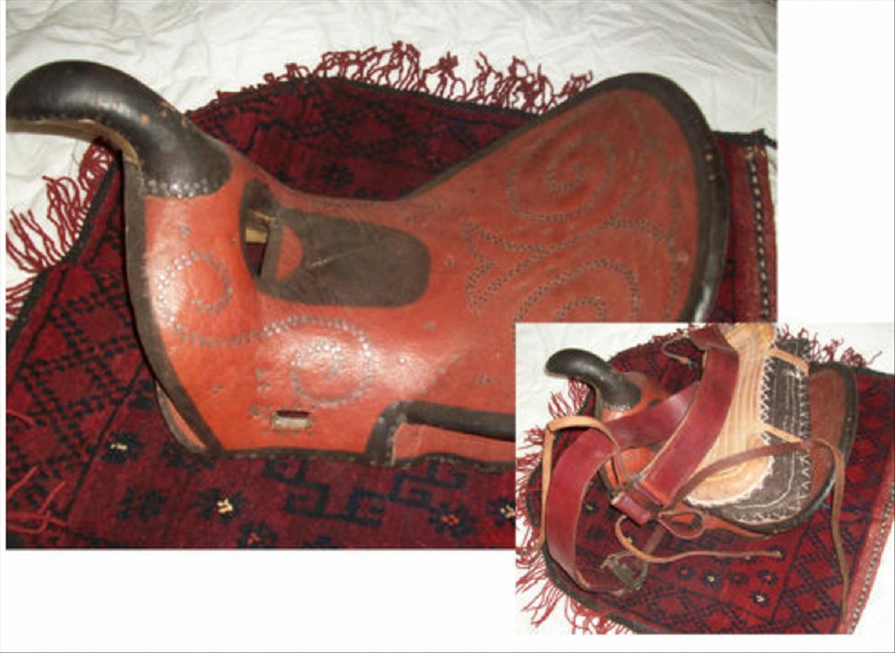 Déconnecté | vends une magnifique selle afghane pour le jeu national "bouzkachi", qui consiste à tirer le corps d'un mouton dans son camp, à cheval. J'ai acheté cette selle à Kaboul en 2011, auprès d'un artisan qui fabrique les selles spécialement pour ce jeu. Avec la selle il y a les amortisseurs pour la selle et une sangle. La selle est rigide, en bois avec la peau de chèvre tendue dessus à l'aide des petits clous, mais très confortable et légère. A celui qui l'achètera je montrerai comment on met se genre de selle à cheval, et j'offrirai les étrivières en cuir brut (les étriers utilisés par les afghans sont les mêmes qu'on utilise en France pour monter). Irait très bien pour défilé, ou bien pour un collectionneur. Lors des défilés les afghans mettent dessus un morceau de tapis, tout simple![]() Lien |