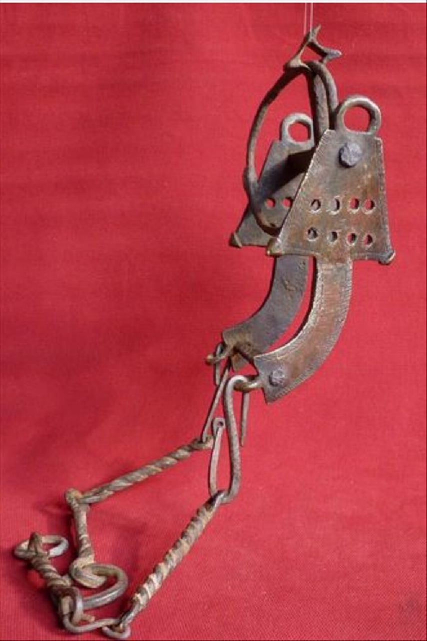 Déconnecté | Ancien Mors africain à anneau-gourmette du Niger, région d'Agadez 19e siècle rare objet de collection branches en bronze, embouchure, anneau et chaînes de rênes en fer forgé hauteur totale 21 cm, embouchure 8,5 cm, hauteur de la palette 6,5 cm poids 780 g. Lien |