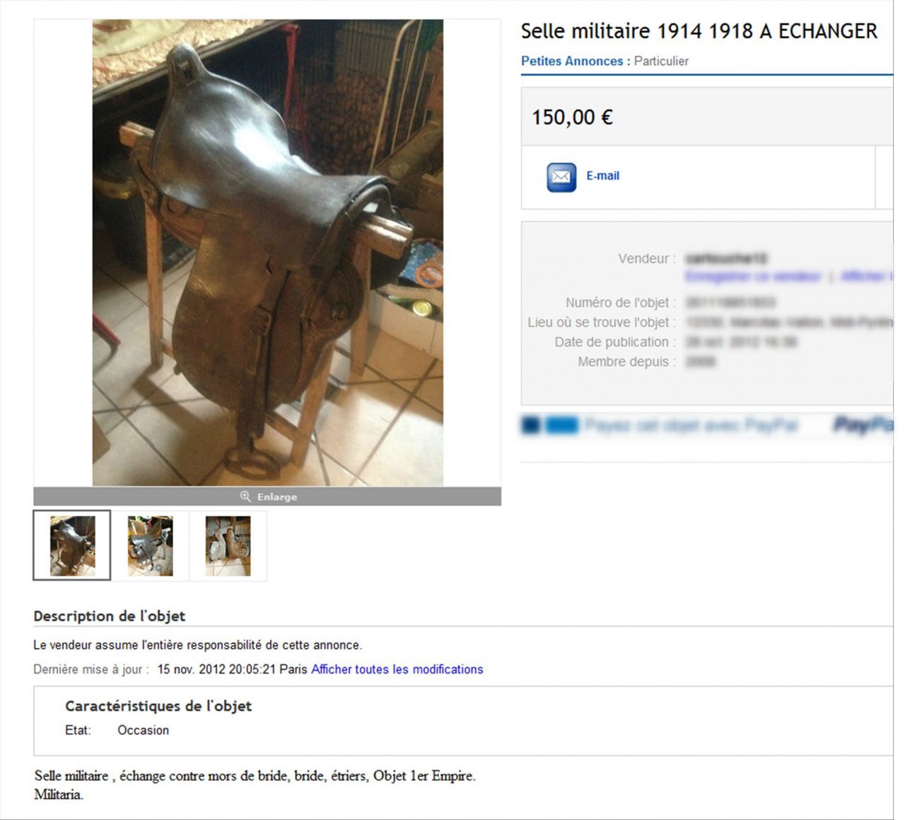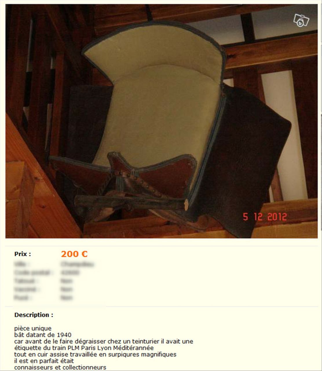 Déconnecté | la selle russe ne monte pas vite en enchère. Je viens de trouver une très belle selle de plantation ![]() ![]() Lien |