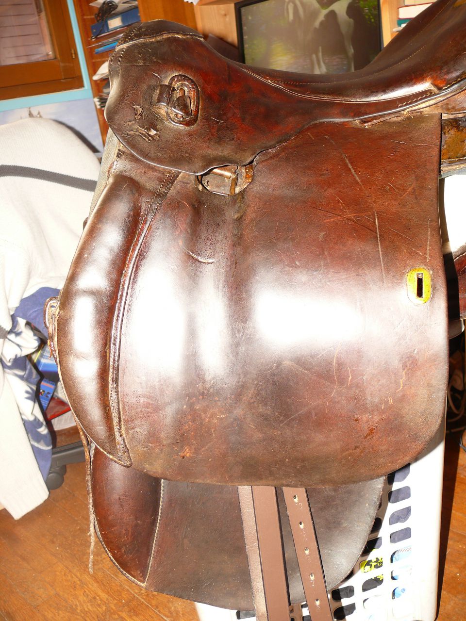 Déconnecté | j'aimerai avoir un avis visuel sur cette vieille selle : c'est moi ou une impression mais il me semble que les matelassures sous le pommeau sont décollées. J'essaie de comparer avec ma selle d'obstacle qui doit avoir le même âge et la vision n'est pas la même ( la mienne est en état : j'avais fait un post pour demander ce que c'était comme selle ). http://cgi.ebay.fr/SELLE-DE-CHEVAL-CUIR-VERITABLE-/250911014948?pt=FR_JG_Sports_Equitation_Cheval&hash=item3a6b764024 Ce message a été modifié par un modérateur.Ce message a été modifié par un modérateur. |