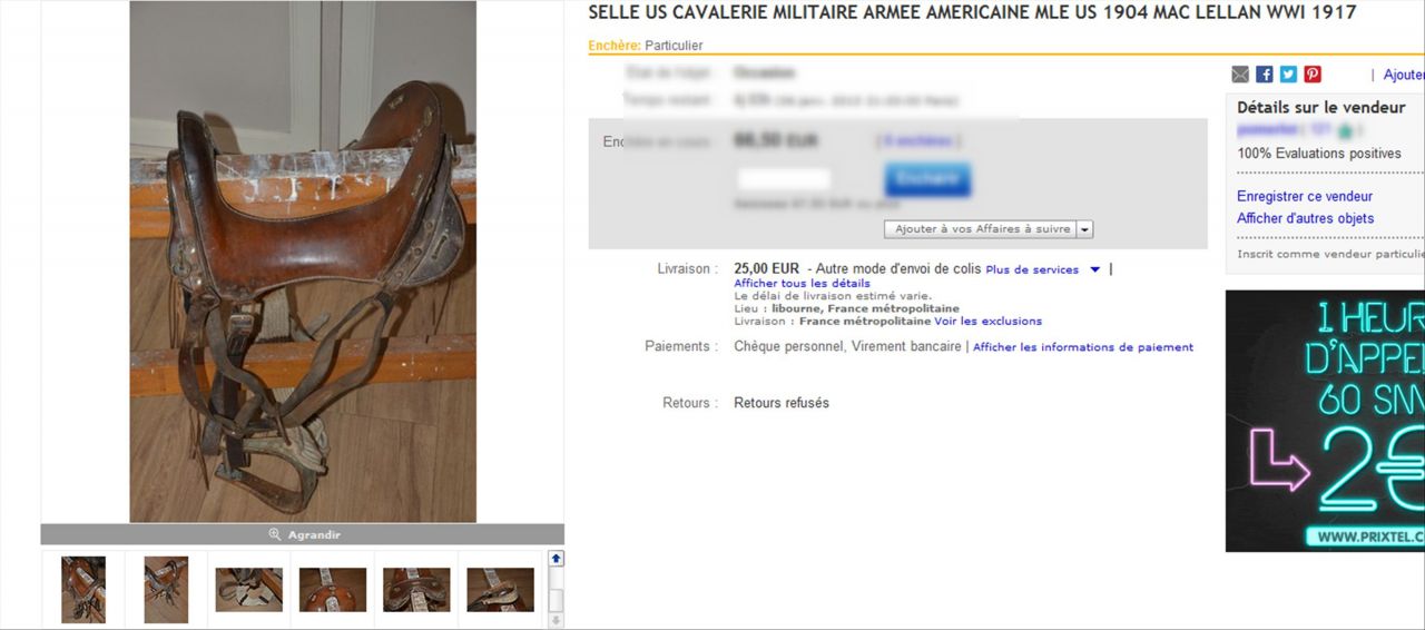 Déconnecté | j'aimerai avoir un avis visuel sur cette vieille selle : c'est moi ou une impression mais il me semble que les matelassures sous le pommeau sont décollées. J'essaie de comparer avec ma selle d'obstacle qui doit avoir le même âge et la vision n'est pas la même ( la mienne est en état : j'avais fait un post pour demander ce que c'était comme selle ). http://cgi.ebay.fr/SELLE-DE-CHEVAL-CUIR-VERITABLE-/250911014948?pt=FR_JG_Sports_Equitation_Cheval&hash=item3a6b764024 Ce message a été modifié par un modérateur.Ce message a été modifié par un modérateur. |