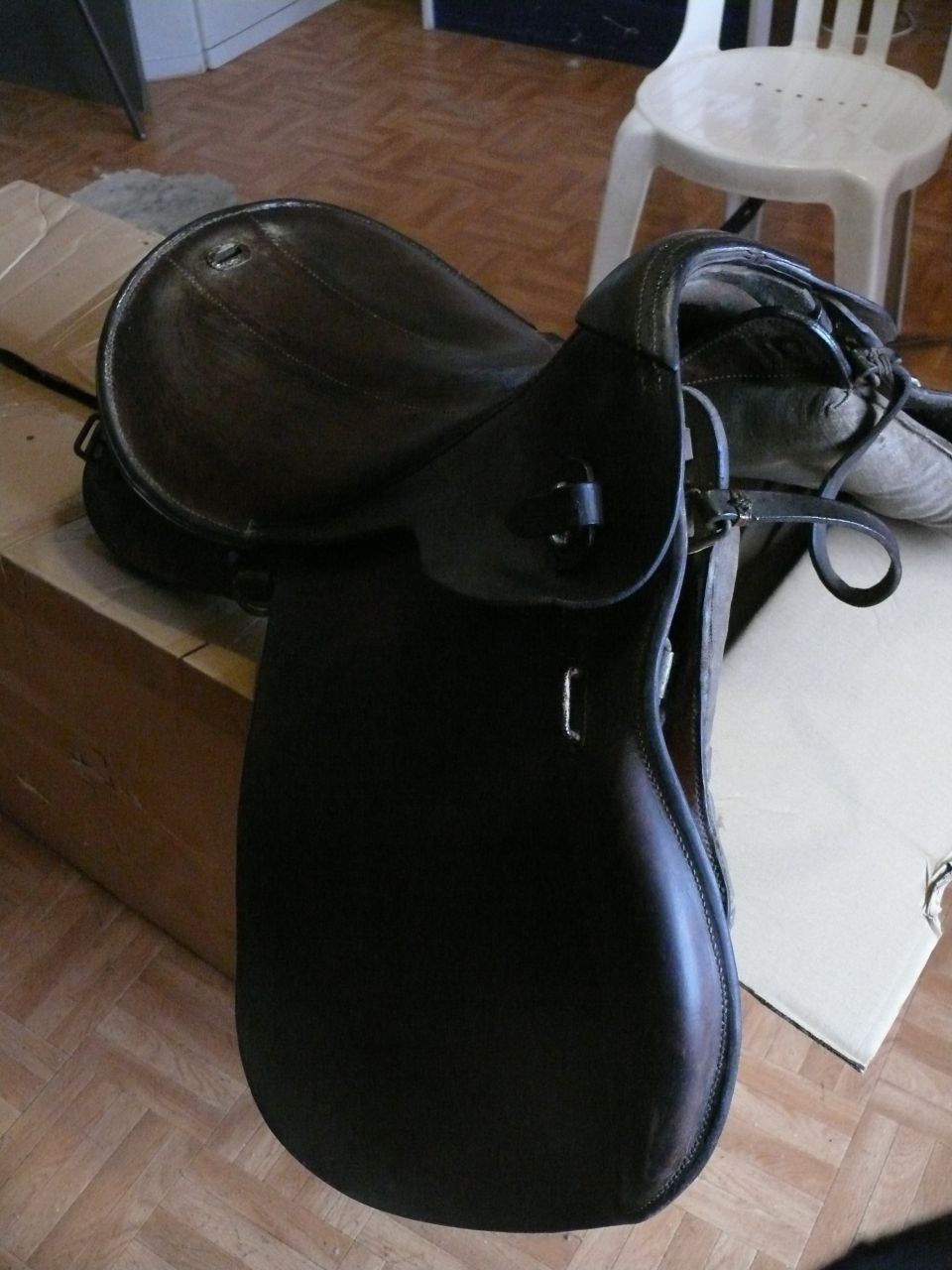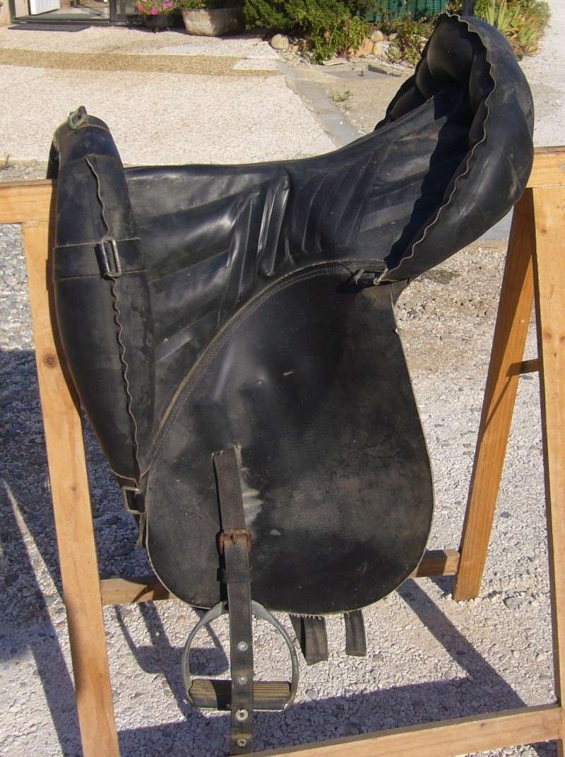 | Dire merci | Je reviens sur l'annonce des 6 selles de l'armee des indes a la page 61. J'en ai trouve une pareil mais recente que j'ai "arrangé"...j'ai été epatée par le confort de ces selles!!!! On est vraiement bien avec le siège suspensu! |