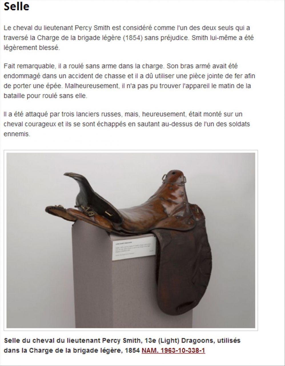 | Dire merci | Le cheval je ne sais pas, la selle est une 1861 d'artillerie Française attelage à la Daumont. |