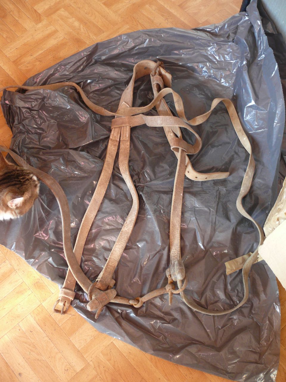 | Dire merci | Tiens les photos de la mienne pour comparer:![]() ![]() Le loup tu peux le refaire avec de la sangle de sécurité de voiture...j'en ai s'il t'en faut aussi... Tu peux regarder la taille? c'est un chiffre gravé sur le cuir a l'arrière du troussequin (coté droit je crois)c'est un chiffre qui va de 1 à 5.... Je veux bien te troquer ton filet de trait si tu veux...ça me fera une belle déco ![]() |
