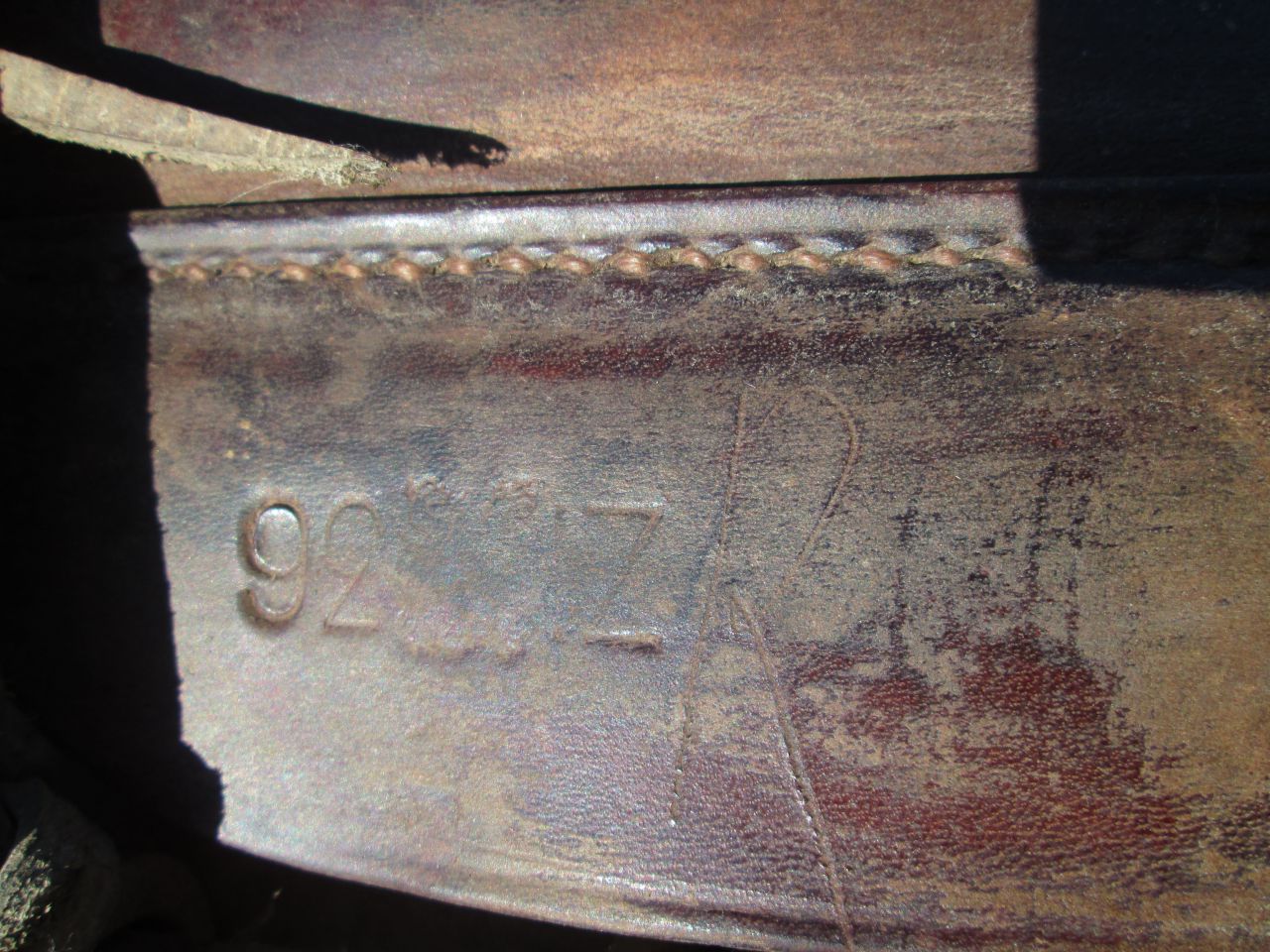 | Dire merci | Aucune idée de l'origine de ces sacoches désolée... Je suis en train de refaire la sangle W2 avec le cuir, vu qu'il est impossible de trouver de la sangle en toile (a moins d'avoir des relations avec la garde républicaine). Je trouve que le rendu se rapproche assez bien de l'original....En tous cas le avant/après est assez saisissant ![]() En démontant j'ai trouvé une inscription: ![]() |