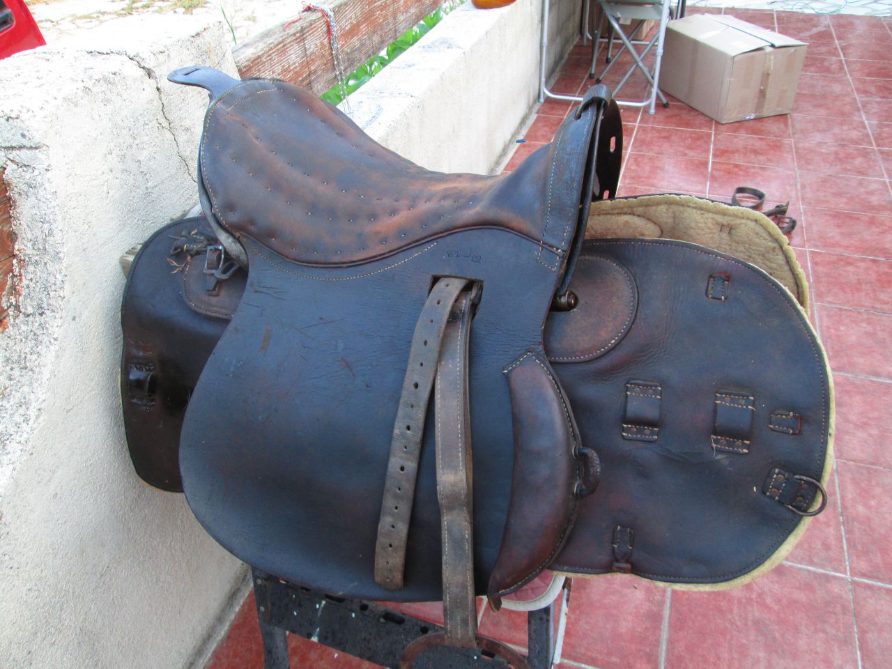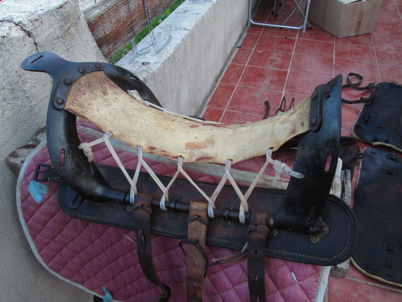 | Dire merci | Une selle western, c'est marqué dans l'annonce. Bon, à part ça, ça "sent" le matériel Prussien, ou Autrichien, très certainement d'artillerie. Je vais regarder si j'ai quelque chose dans les archives. |