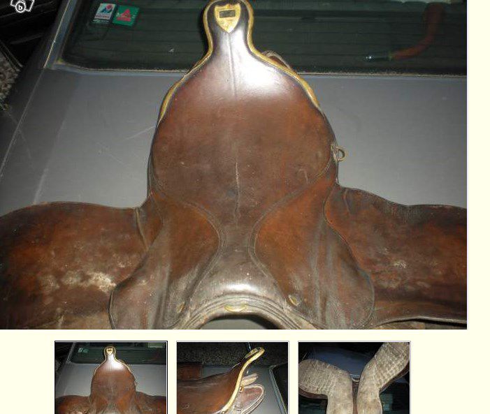 | Dire merci | Ce matin, il y avait le meme genre d'annonce et d'ailleurs, je ne l'ai pas mise tellement ça sentait l'attrappe-nigaud! C'etait une selle de gendarmerie a palette (vers 13hoo je crois)..."selle de collection"... |