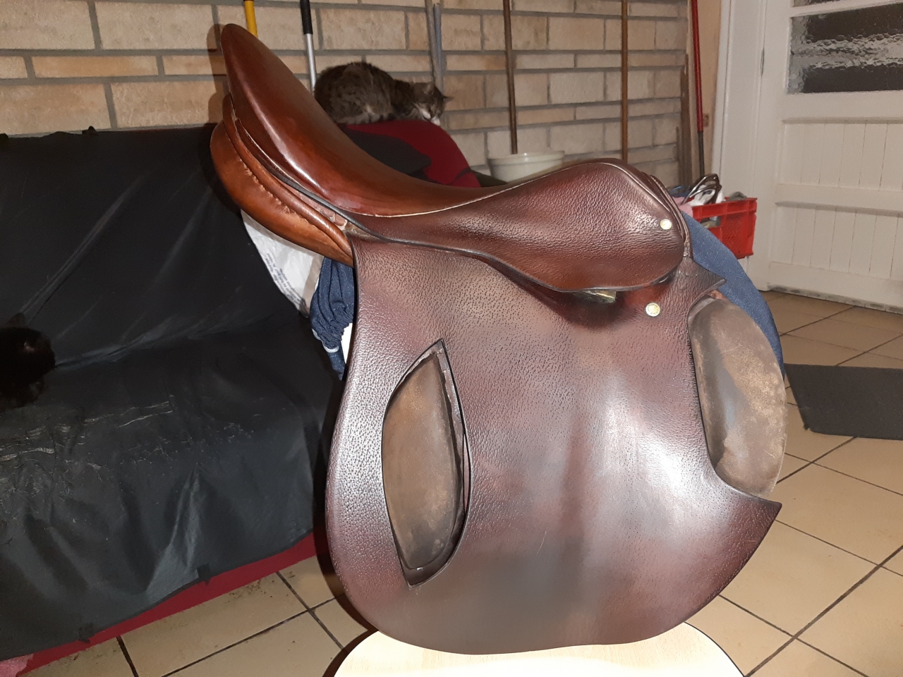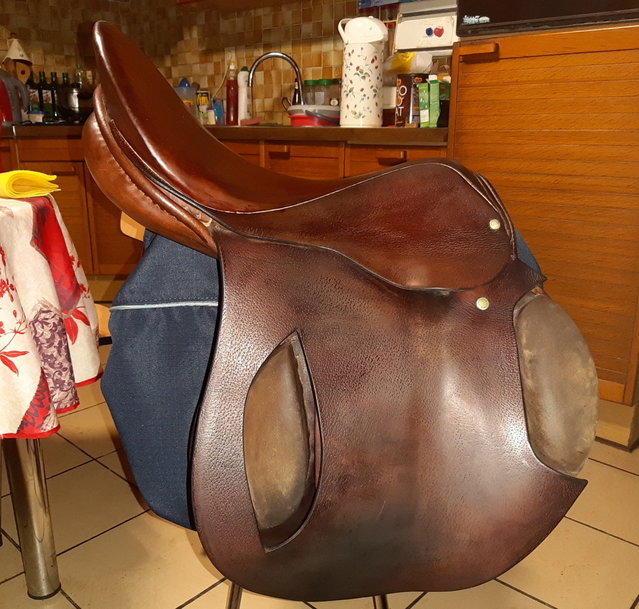 | Dire merci | Elle est là chez moi C'est une stubben , plus précisément Joh's Stubben Krefeld, modèle Siegfried.État excellent, n'a jusqu'à présent eu qu'un seul propriétaire très très soigneux de ses affaires. Les matellassures sont impeccables et bien moelleuses. Le cuir est très beau, mais a bien soif, la selle est restée longtemps au placard. Après son decrassage, Elle vient d'engloutir la graisse que j'ai appliquer il y a 1h. Demain elle aura un deuxième passage. ![]() ![]() ![]() ![]() |