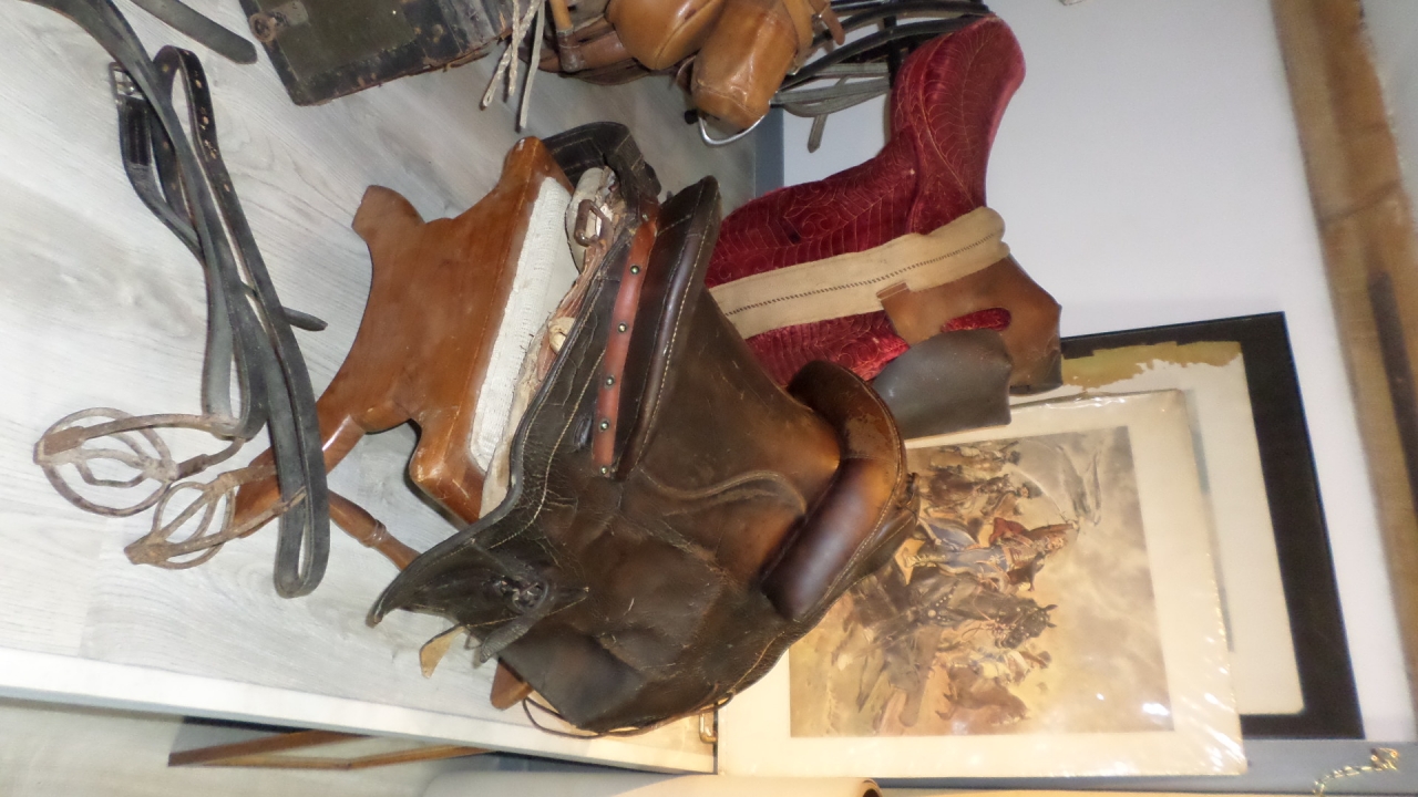 | Dire merci | et tiens, puisqu'aujourd'hui il fait très froid et que je suis devant mon PC, je vous présente une autre rareté (qui semble avoir été remaniée par un sellier professionnele mais pas tout à fait comme elle devait être à l'origine) : une selle anglo-hussardée vers 1850![]() ![]() |