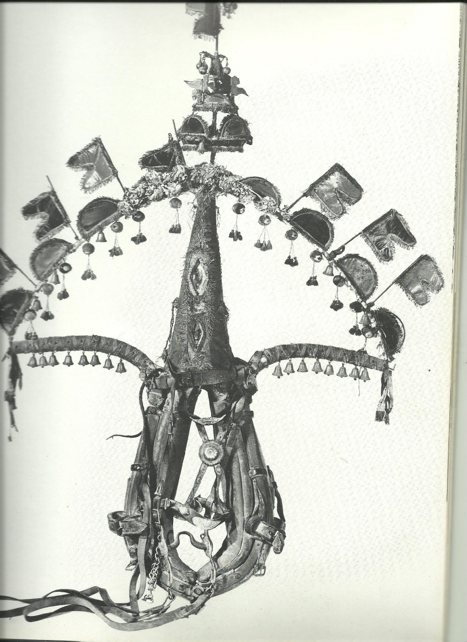DéconnectéDire merci | Enfin, voici le cheminement parfois bizarre des objets, et le détournement de leur fonction : Toujours au musée Arlaten, dans les traditions agricole pour honorer saint Eloy, une bride d'officier de hussard, pendue à un collier de saint Eloy. Ce militaire, ayant terminé son engagement, a réutilisé sa bride pour son cheval de trait, et transmis cet objet à ceux qui lui ont succédé ( Tant qu'il y a eut des chevaux en agriculture). Vous pouvez y trouver le mors à la hussarde, la muserole croisée, de chanfrein, avec diverses plaques, le soleil, les feuilles... A gauche les reines se terminant par un fouet tressé, à droite, coincée dans l'autre étoile du collier, le croissant de sous gorge avec le visage de Pierrot. Le musée décrit le collier d'épaule, comme objet de tradition, en aucune façon la bride militaire. Curieux cavalier, qui à aimé ses chevaux, de selle ou de trait, frolé tant de dangers, et disparaître dans l'anonymat d'un musée. Il faut le coup d'oeil momentané d'un visiteur averti pour le faire revivre l'espace d'un instant. ![]() |