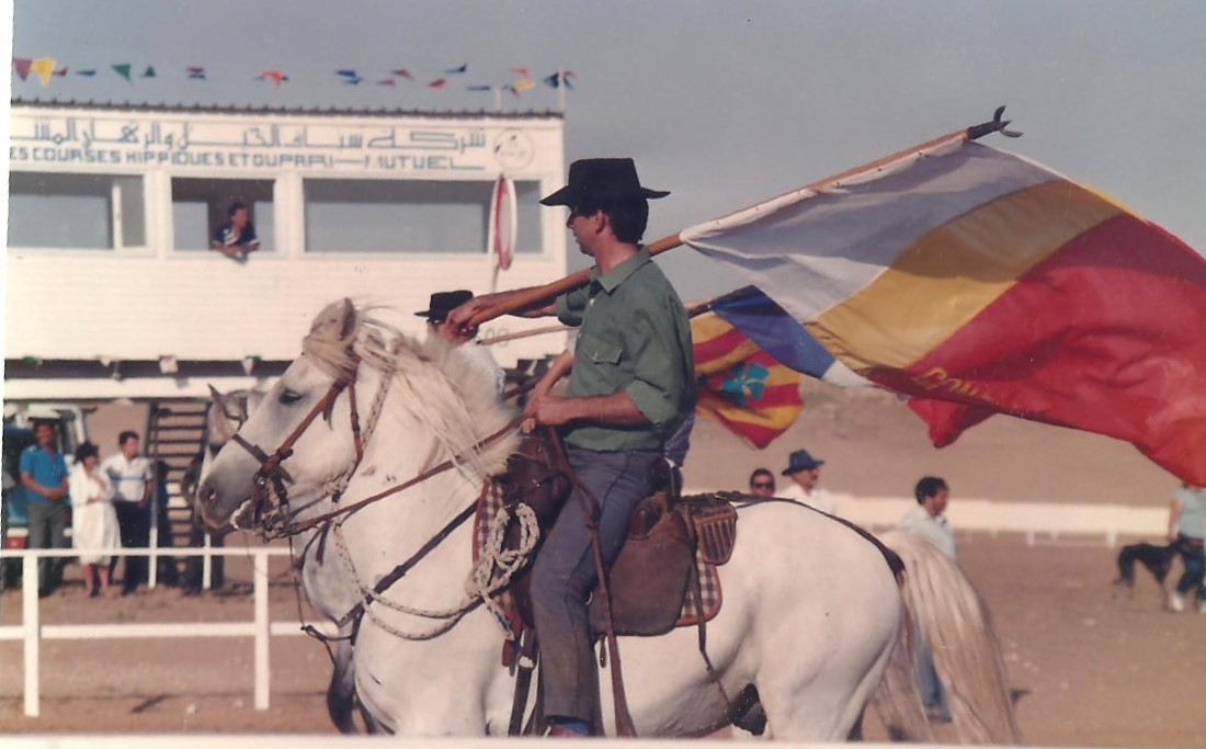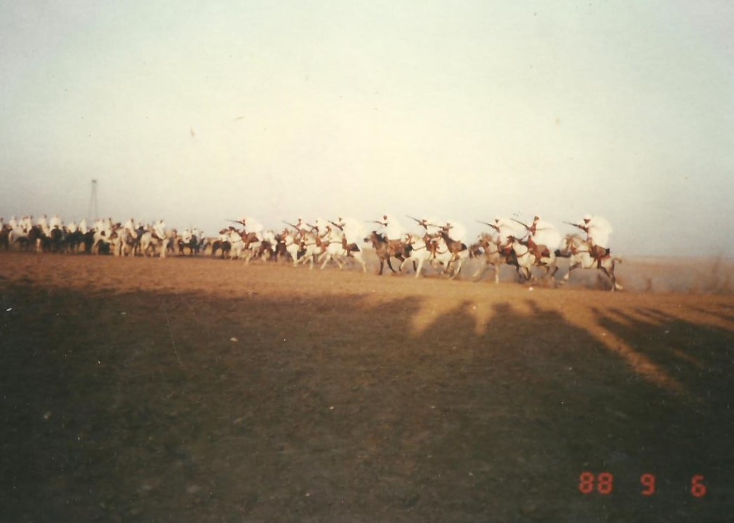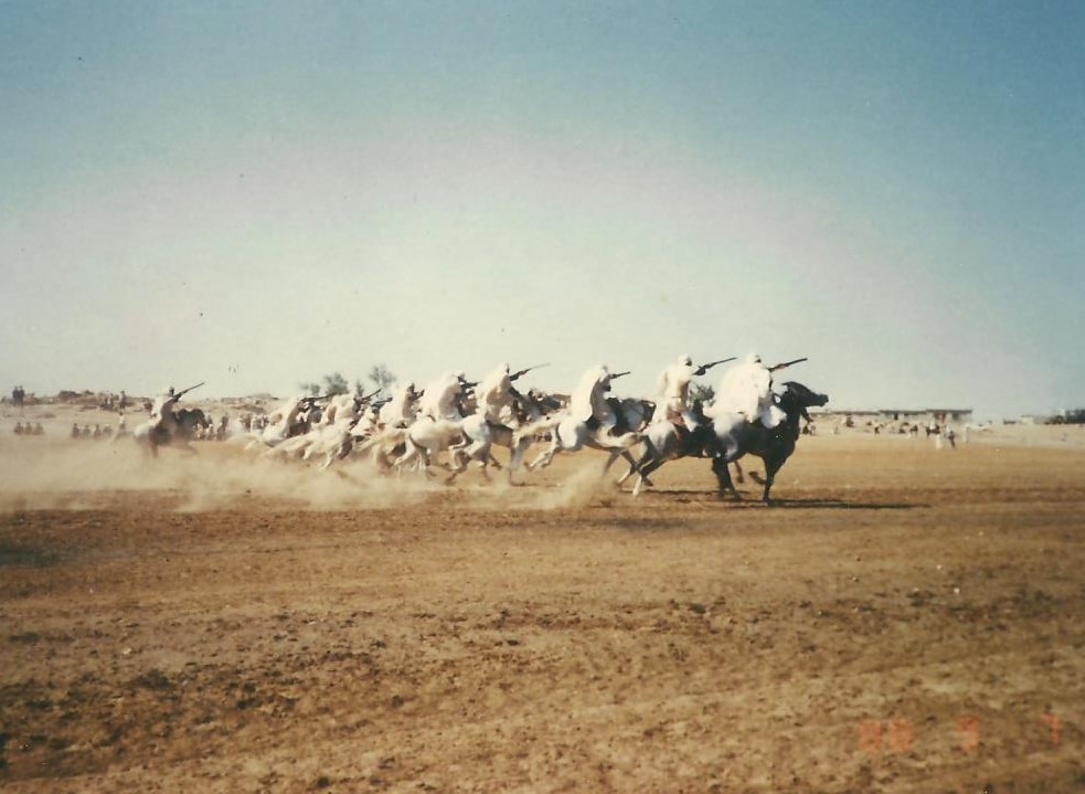 DéconnectéDire merci | ![]() ![]() ![]() Il y a quelques années (1988) les temps étaient moins troublés, nous avions rencontré à Cheval Passion des éleveurs Algérien de chevaux Barbes. Ils nous ont invité à venir chez eux à Tiaret pour le festival de fantasias. Nous nous y sommes rendu avec 22 cavaliers de 2 manades, pour représenter le cheval Camargue. C'était une aventure, nous n'avons pas amené la crème des Camargues ne sachant pas si nous allions les ramener. Nous avions été très bien reçu, parmi les bédouins, et les éleveurs, au haras de Chaou Chaoua. Les fantasias se déroulent à une époque bien précise, la fin de l'été. Nous n'avons pas assisté à un spectacle pour touristes, vu que nous étions les seuls visiteurs. Ce fut quelque chose de passionnant pour un amateur de chevaux un spectacle grandiose, des cavaliers à perte de vue.. |