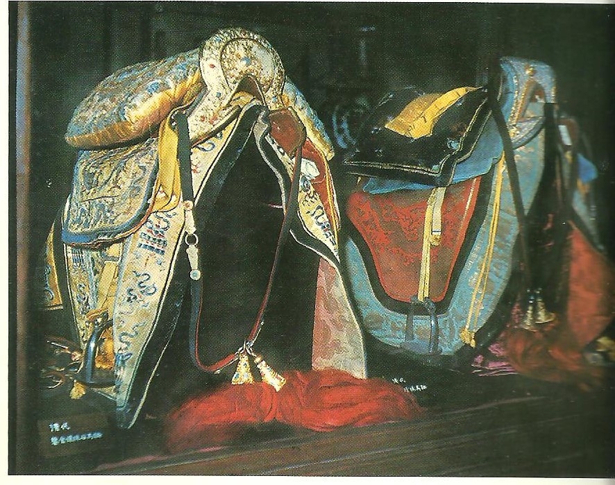 | Dire merci | Autre exemple de selle comportant un loup (plutôt fatigué le pauvre loup) trouvée (ou pillée ?) dans le nord de la Chine. Les pangolins ou les chauves souris ont dû bouffer le coussin qui a disparu.. Toutefois, si d'éminents cavaliers du forum veulent l'essayer, pas de problème. en plus, elle a ses étriers et le mors, bon, faut pas avoir un trotteur de 1m70 car tout cela est minuscule ni un psa qui s'arrête sur 5m au galop, voyez où je veux en venir, vu le décors de pommeau.![]() |