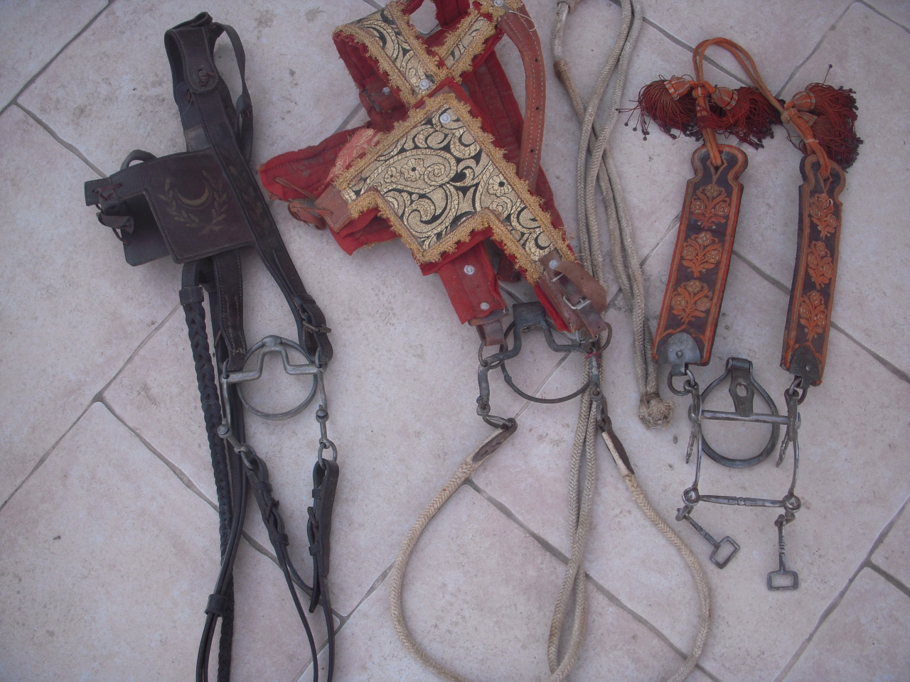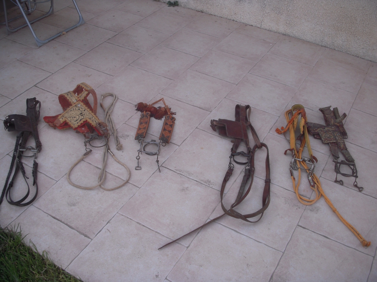 | Dire merci | Pour compléter l'explication de Tartarin concernant le maniement des chameaux, voici un ensemble provenant des écuries du roi du Maroc. (peut être doit-on dire chamellerie ?) Cet ensemble m'a été offert en remerciement pour une expo au profit de l'écurie retraite de Pech Petit.![]() |