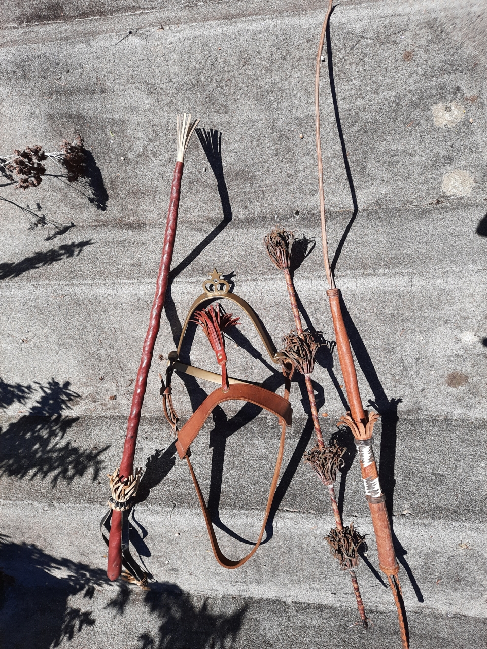 | Dire merci | Oui, c'est un fouet pour dames. Le mors c'est pas juste en main??? (avec le shifney), l'étrier ,je vois pasde modif pour faire un marquage, une clef à crampon géante? ,(mais j'aurait fait une manivelle ) l'idée du marche pied ,tiens, c'est pas mal... |