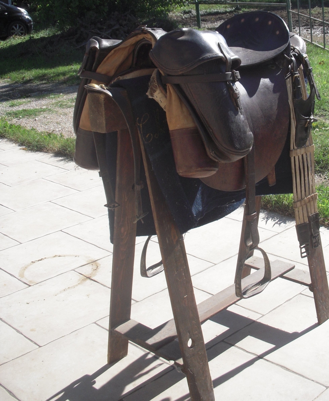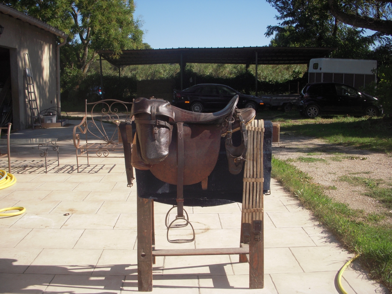 DéconnectéDire merci | les guerres d'indépendance de l'empire espagnol , celui des Bourbon d'Espagne soutenus par leurs cousins Français , guerres qui durent longtemps Ensuite peut être mais bien plus tard la guerre civile américaine si les selles étaient toujours en dotation ou en réserve dans l'armée française , ce que je ne crois pas . toujours est-il qu'une reconversion dans le tourisme ( inexistant au XIX° ) est exclue mais surtout le développement d'une monte à l'anglaise a pu rendre obsolètes ces selles et contribuer à leur disparition/destruction plus que l'âge lui même . Celle que j'ai trouvée a du rester dans son grenier comme la Belle au Bois dormant et ni son cuir ni ses coutures n'ont bougé tout comme une 1874 dans les mêmes conditions . |