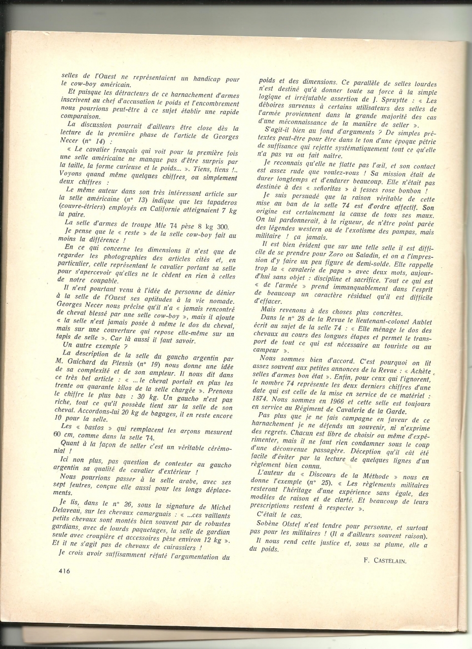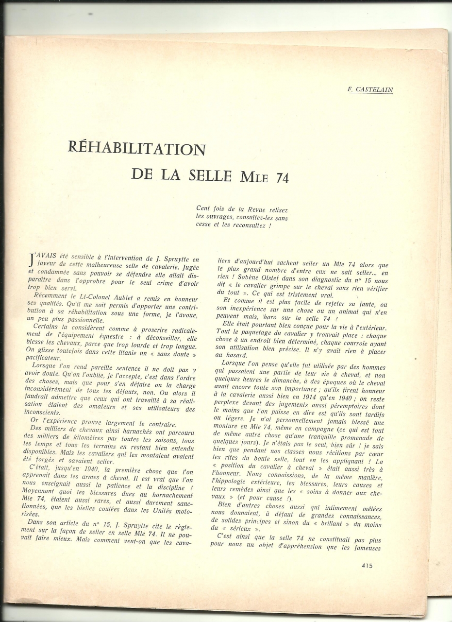 DéconnectéDire merci | Super la Remonte, en ce qui me concerne je n'ai jamais participé à une grande messe de la reconstitution du style Austerlitz ou Borodino. Par contre j'ai participé plusieurs fois à l'arrivée de l'Empereur à Golfe Juan. Jamais plus loin...... Voici une selle qui a été décriée de toutes les façons. J'ai retrouvé dans mes archives un No 35 de Plaisir Équestre de septembre 1967, qui plaide en sa faveur, je vous en fait part, à vous de juger ![]() ![]() ![]() ![]() ![]() |