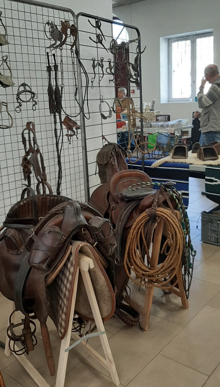 DéconnectéDire merci | C'était juste avant que le pangolin et la chauve sourie chinoise nous prive de toute activités A la demande d'un club de philatélistes, nous avions présenté une exposition de collection multi sujets, moulins à café, appareils photo, soupières, timbres, et moi même objets équestres, l'expo a durée 2 jours, très appréciée, devait se refaire... Beaucoup de questions, et d'intérés divers, une rencontre favorables entre collectionneurs. LA Remonte, en ce qui me concerne j'ai eut 2 PS qui venaient d'un entraîneur de Nimes les écuries Grégu, ils avaient bon caractère, j'ai peut être eut de la chance, filet au départ, puis bride complète plus tard. Par la suite quel que soit la race, je n'ai acheté que des poulains sevrés, 6 mois, pour dépenser moins à l'achat, et pour n'avoir de reproche à faire qu'à moi même, quand vient un problème ![]() ![]() ![]() ![]() |