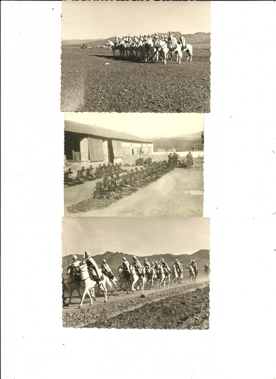 DéconnectéDire merci | ![]() Les spahis avaient conservé le harnachement oriental, avec la bride ayant des oeillères.Pour protéger les montures du vent des sables, très violents en Afrique Orientale. Les cavaliers indigènes avaient mème parfois de petits rideaus de laine colorée pendu à la muserolle pour protéger les naseaux. Seul le radio,ansi que le cavalier préposé au fusil mitrailleur avaient une selle 1874 |