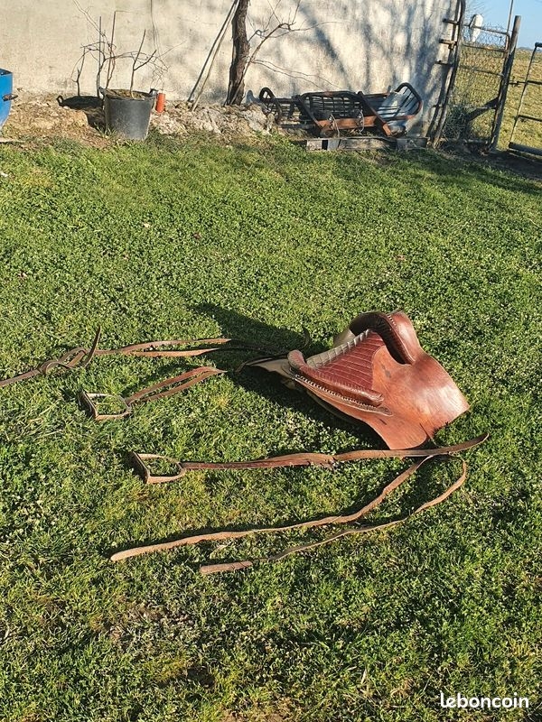 | Dire merci | rhooon je suis jaloux. j'ai récupéré de deux anciens leurs vuirs (oups! heureusements que je relis ça doit être la contraction de vieux et de cuirs) dans les greniers... (suis passé en dernier),bon, malheureusement ça ne valait pas grand chose les filets souvent cassés j'ai gardé des mors et une ou deux entraves pour déco et deux timons pour une future étagère.. Et là où je suis jaloux ,c'est que là une selle française ... je pense que l'assise se rapproche de mes américaines... et me vient une question . Mais pourquoi n'en refait-on pas ? (en refait-on? ). |