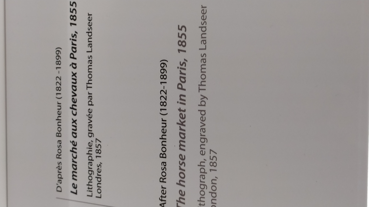 DéconnectéDire merci | oui quel tempérament , la nature est parfois capricieuse , on trouve des femmes avec des caractères très virils , un esprit masculin dans une enveloppe féminine et ... réciproquement .De grand écrivains comme Flaubert ou Tourgueniev le reconnaissent eux mêmes . honneur aux femmes donc , avec aujourd'hui le bicentenaire de la naissance de Rosa Bonheur , qui de mâles ne supportait que les taureaux ![]() Peintre animalier , plus reconnue en Angleterre qu'en France où son énorme production est pratiquement oubliée . ![]() ici , détail du marché au chevaux à Paris , il y avait du boulot , et quel danger ! Message édité le 16/03/22 à 09:16 Message édité le 16/03/22 à 09:21 |