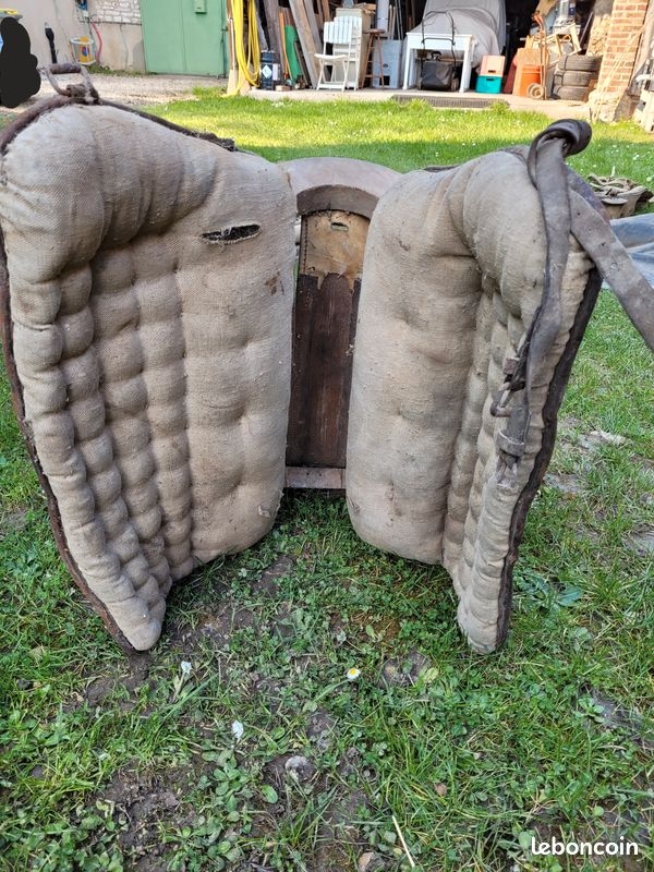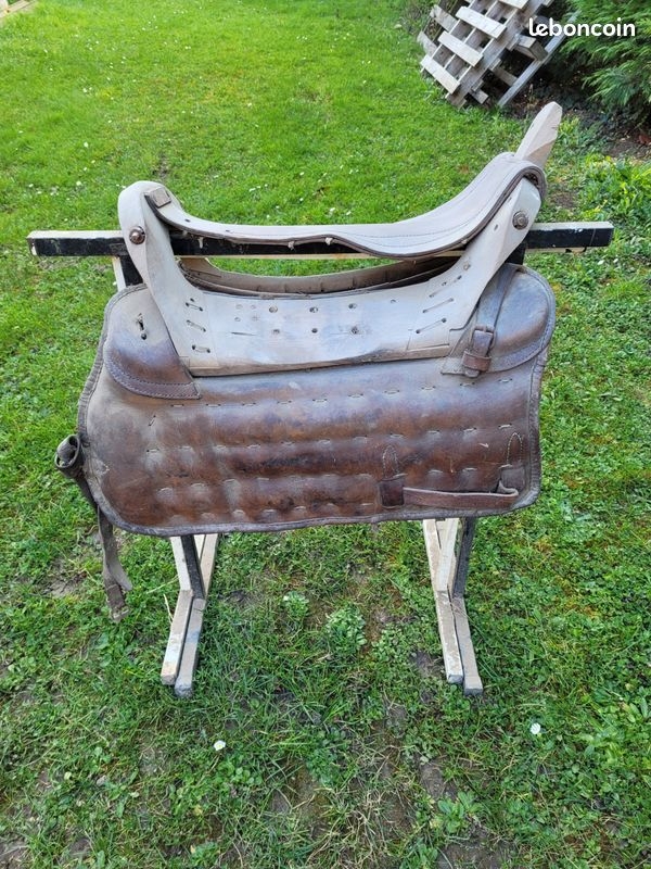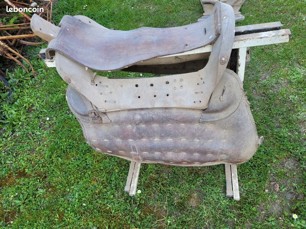 DéconnectéDire merci | superbes les selles ! une selle est plus facile à réutiliser qu'un harnais... car pas soumise à de grosses forces de traction. Une bricole en cuir désséché pourra retrouver belle allure mais sûrement pas subir des à-coups lors de la traction d'un tombereau dans des ornières. |