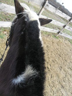 | Dire merci | Finalement Bijou n'a pas été rasé cette année, manque de temps et puis on va "tester" de le soulager de la dermite avec les huiles essentielles, ca va lui favoriser la pousse et le bon état des crins Et Chapy, pour un paint x appaloosa, je le trouve vachement bien fourni donc pas touche XD |