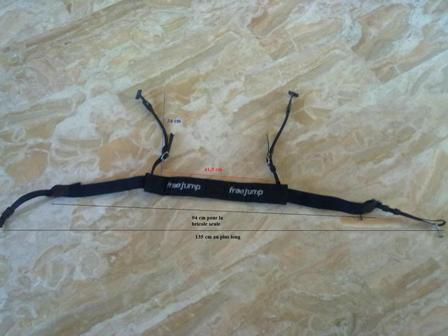 | Dire merci | alors en longueur au plus long 135 cm longueur sans les sanglons 94 cm la bricole seule (là ou il y a écrit freejump) 41,5 cm et les senglons d'attache d'en haut 34 cm. s'il faut d'autres mesures, hésites pas. |