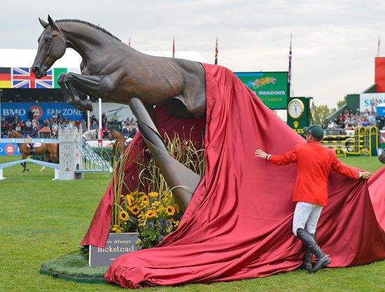 | Dire merci | Un bel hommage. Equidia - La Chaîne du Cheval " Hickstead méritait bien ça. Lors d'une cérémonie très émouvante à Spruce Meadows, Eric Lamaze a dévoilé la magnifique statue de son compagnon de toujours. Elle sera installée définitivement à l'International Arena de Calgary au Canada, auprès des siens. Un bel hommage pour ce cheval de légende, une source d'inspiration pour toutes les générations de cavaliers ! Crédit photo : Kim Houghton / FEI / Rolex " ![]() Message édité le 10/09/12 à 14:55 |