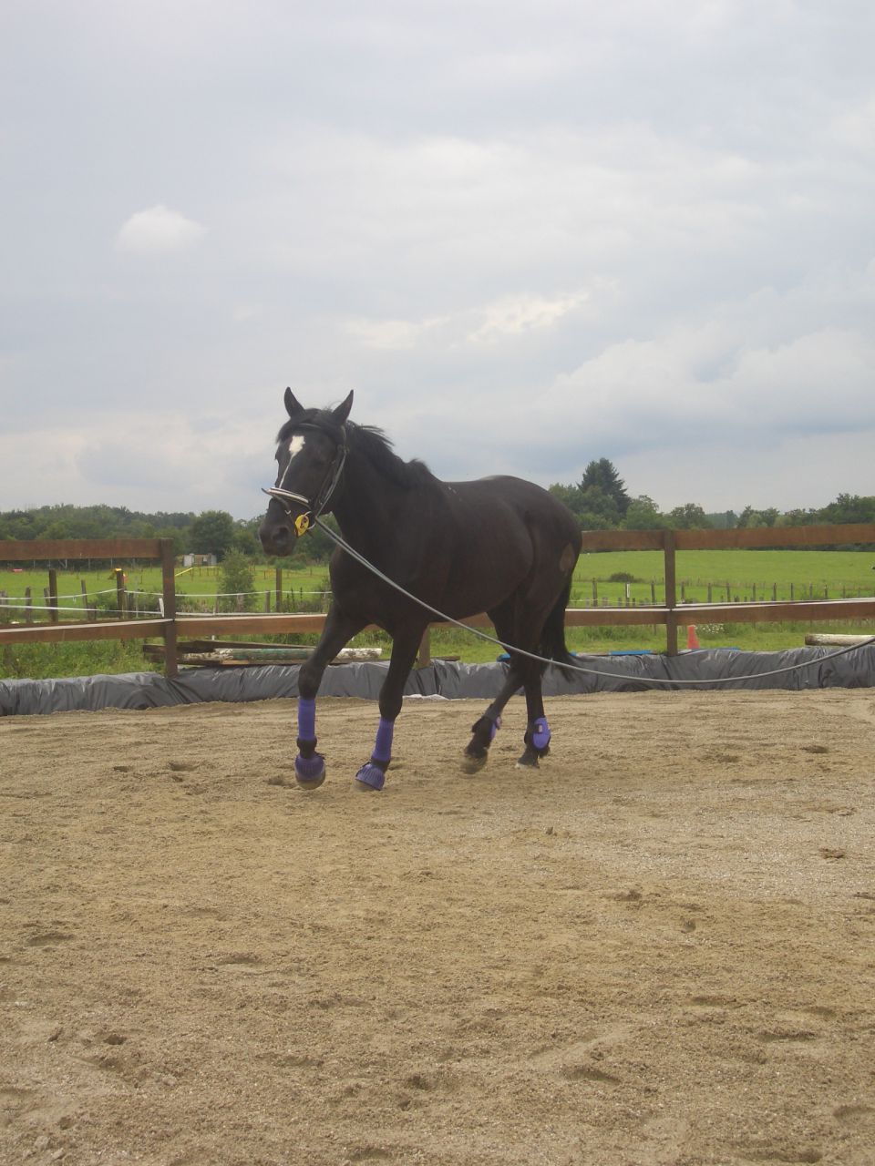 | Dire merci | [url] https://www.1cheval.com/membre/forum/dressage/sujet-55086-0-le-travail-en-longe-tessa[/url] je recommande vivement la lecture de ce post dédié à la longe ! Perso je longe pour : -voir mon cheval travailler et évaluer sa locomotion -varier le boulot -faire certains exo plus facilement qu'en selle Mes séances sont très variables : il peut s'agir de -travail "sur le plat" avec une attitude très étendue, beaucoup de transitions, différentes figures de manège assez simples -travail de dressage avec sortie des hanches, travail sur de petits cercles, travail sur les départs au galop, "rassemblé" (avec plein de guillemets parce que mon cheval n'est pas encore prêt à du vrai rassemblé) -gymnastique avec barres au sol, cavalettis, etc... Perso je travail avec un licol corde, car j'ai pas de caveçon et que j'en ai jamais utilisé donc pas l'habitude. Je m'en satisfait TB même si je sais que c'est sans doute pas l'outil idéal. |