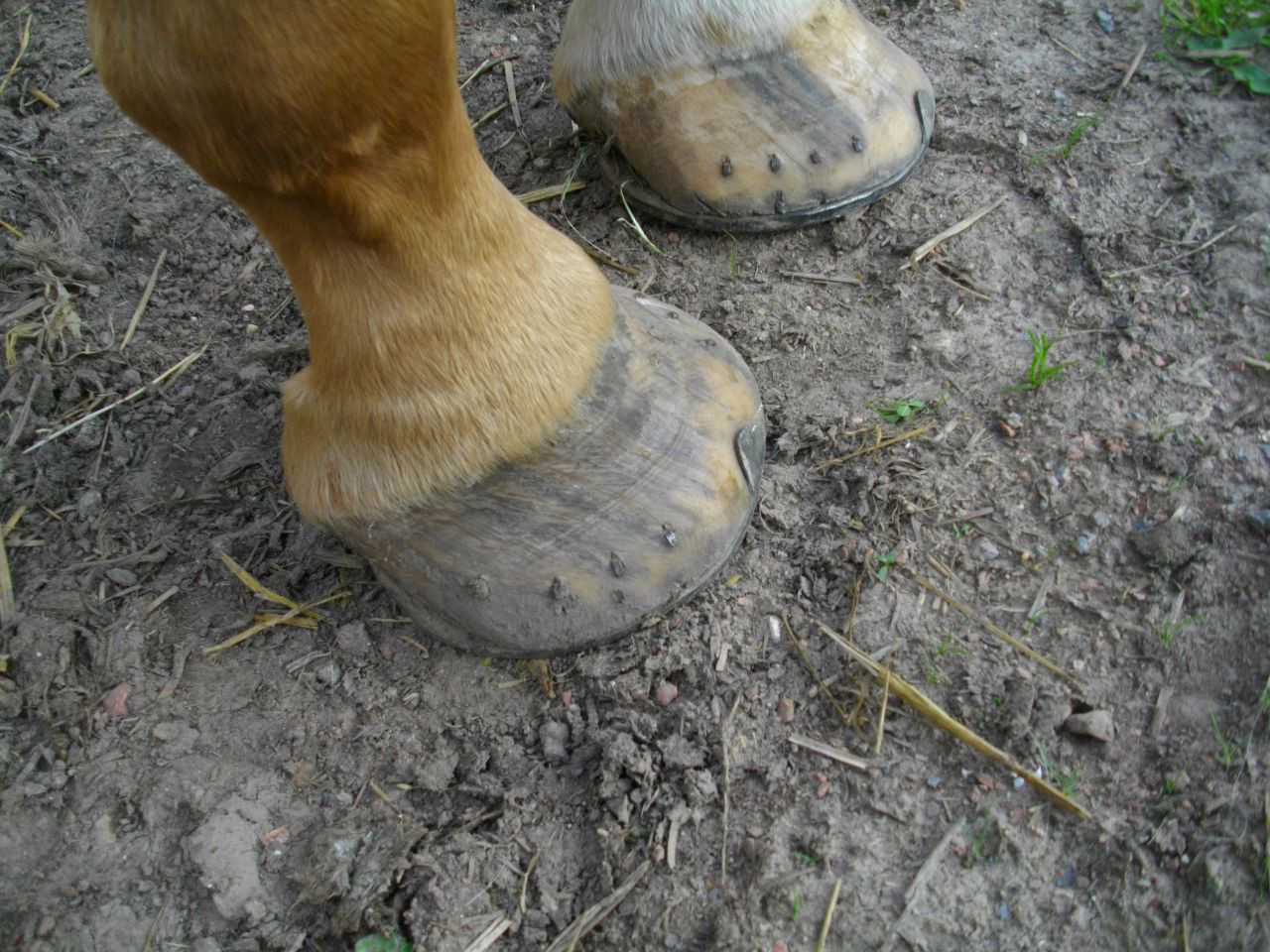 | Dire merci | Oligo avait les pieds un peu comme ça. Grâce à un bon maréchal, il a maintenant de beaux pieds, même s'il garde ses aplombs foireux, forcément. Bref, change de professionnel, que ce soit un parreur ou un maréchal. |