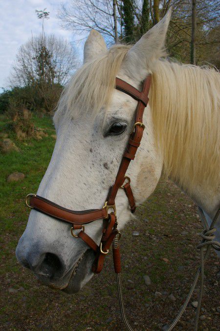 | Dire merci | Casimirus cela faisait longtemps J'ai bien peur d'en arriver la pour la demi-trait c'est exactement pareil : frontal trop petit et sous gorge aussi (elle a pris de la bonne bouille de percheron) Je fonctionne pour le moment avec un vieux norton trouvé dans un vide écurie, le cuir a du travaillé alors ça va a peu près. |