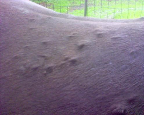 | Dire merci | merci les filles! par contre c'est pas situé comme sur ta memère Emilie et y'a pas les croutes blanches après..par contre y'a deux chevaux de la pension qui ont exactement la meme chose! ELEVCARAIB je pense aussi à l'allergie,surtout que ça correspond avec le cycle de nouriture mais je ne comprend pas à quoi il peut etre allergique,je pensais la luzerne parceque visiblement il n'en avait pas avant.. et il a eu un vermifuge..on a pas essayé le diurétique,parcequ'il fait plein de crottins déjà |