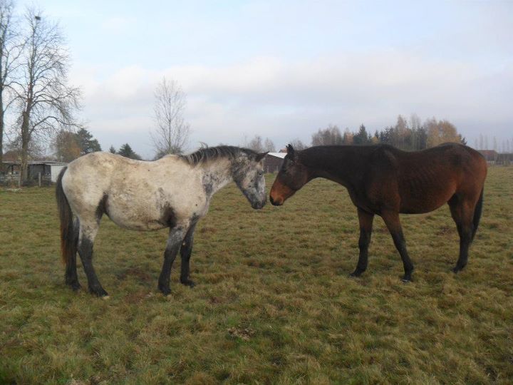 | Dire merci | Vu l'état du cheval sur la première photo, je ne suis pas convaincue qu'il était si bien entretenu que ça... En plus tu dis qu'il n'avait pas de ration. A priori, il a besoin de rations (tu vas pouvoir augmenter progressivement), le foin ne lui suffit visiblement pas. Il a aussi peut être besoin d'un vermifuge adapté, voire d'un bilan véto pour être tranquille avec des compléments si nécessaire. Pour moi, le monter dans cet état et lui demander un petit galop, c'est déjà trop. Surtout en plus il transpire! Autant qu'il consacre son énergie à reprendre du poids. C'est réputé fragile un pur, et difficile à garder en état. Mais pas impossible! ![]() |