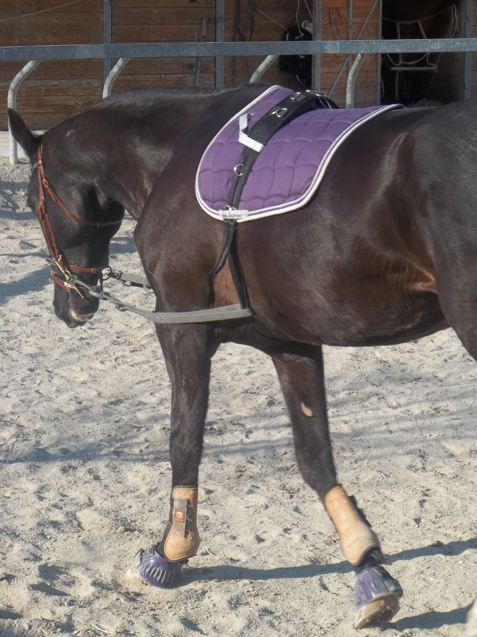 | Dire merci | c'est vrai que pour un noir, tout leur va. moi qui suis une folle des couleurs et ensemble complet, je n'ai plus de place dans ma sellerie. du coup, j'ai violet/jaune, orange, jaune, bleu roi, vert, rouge, blanc et en plus chic, beige/chocolat ![]() j'ai pas beaucoup de photos. j'en mets quelque une pour te donner une idée du contraste que ça peu donner, mais perso, j'adore mon ensemble violet et jaune... tapis violet/jaune ![]() protec violette ![]() licol orange ![]() j'ai pas de photos avec les ensembles complets, mais que ce soit en orange ou en violet, j'ai tout. les protecs, tapis, cloches, bandes de travail, bandes de polo, licol, rondelles et ............ |