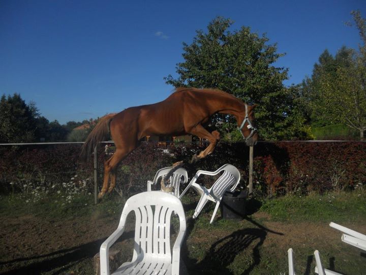 | Dire merci | sauf que moi je n'est pas un centre equestre ou un elevage j'ai juste 3 chevaux et que je ne possede pas de box et que ma cariere et a coté du champs et enfermé dans un box il pete un cable c'est une cheval dont on ne peux pas faire tous se qu'on veut c'est a peine si on peut le tenir en main donc le tenir a l'ecart des autres c'est facile a dire mais c'est plus compliquer a le faire et que si j'essaye de le recuperer pour pas qui saute il est capable de se cabrer donc je tient quand meme a ma vie et il saute pas cette hauteur tous les jours en 10 ans la hauteur qui est sur la photo il dut la sauter 2 fois et apres en exercices il est que longé et jamais monter donc niveau exercice on peut pas dire qu'il se fatigue beaucoup. |