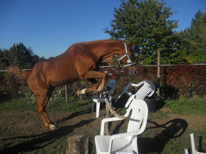 | Dire merci | oui sur les photos il est un peu maigrichon mais depuis qu'il a une nouvelle copine il a grossit et on ne voit plus du tout ses cotes. niveau dentiste il a perdu deux dents mais sinon le dentiste dit qu'il a une bonne dentition et oui il a des compléments tous les jours plus du foin plus de l'herbe et oui c'est lui qui reclame a sauter car mes 2 autres chevaux je les fais sauter et vu qu'il se retrouve tous seul quand les autres travail il saute la cloture et nous rejoind et apres il suit un des chevaux sur les obstacles moi perso je ne veux que le longer mais il m'est impossible de l'empecher. |