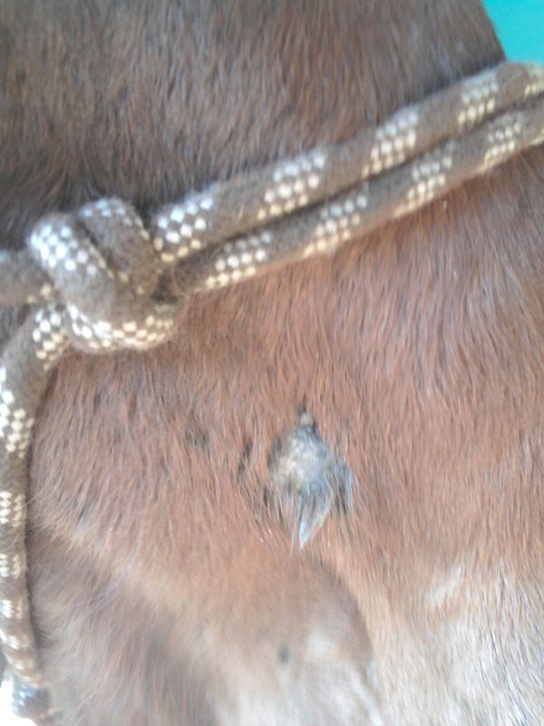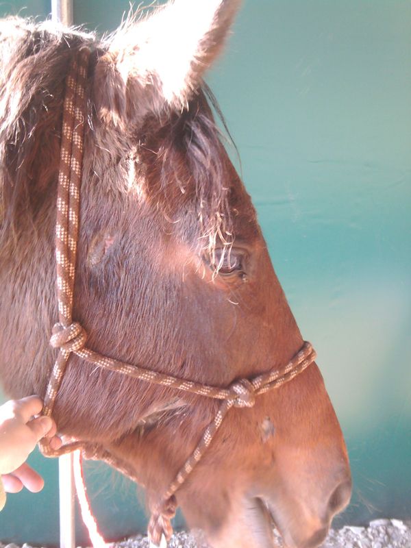 | Dire merci | Depuis plusieurs jours, mon cheval se gratte au niveau de la tête. Au début je ne me suis pas inquiétée car seuls les poils étaient arrachés. Et puis il a dû continuer à se gratter, car on voyait que ça avait saigné. C'est un cheval qui vit au pré avec 3 autres chevaux, et c'est le seul à être atteint. Tous les jours, je désinfecte à la bétadine et je tartine de tifène. Voici des photos : ![]() ![]() ![]() Il a déjà eu la teigne et ça n'y ressemble pas du tout ... J'ai fait le tour du pré et je n'ai pas trouvé ce sur quoi il peut se gratter. Qu'est-ce que ça pourrait être ? |
