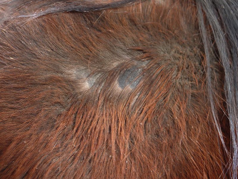 | Dire merci | J'ai une amie qui a déjà eu ce genre de chose sur sa jument. Du coup j'ai traité à l'acadrex hier. Aujourd'hui, j'ai remarqué des petites "pellicules" blanches et les poils au bord des zones touchées partent tout seuls. Est-ce que ce serait des poux ? De toute façon je dois traiter à l'acadrex dans 10 jours et le véto doit passer quelques jours après. |