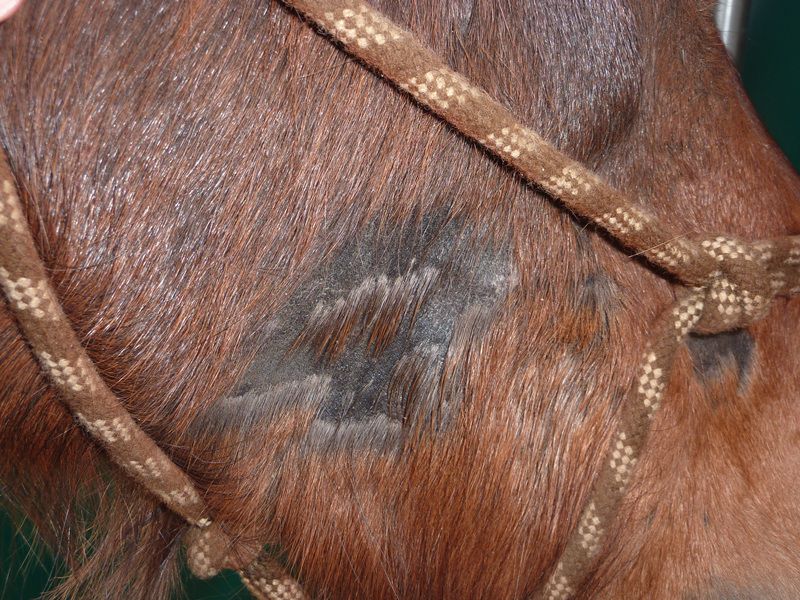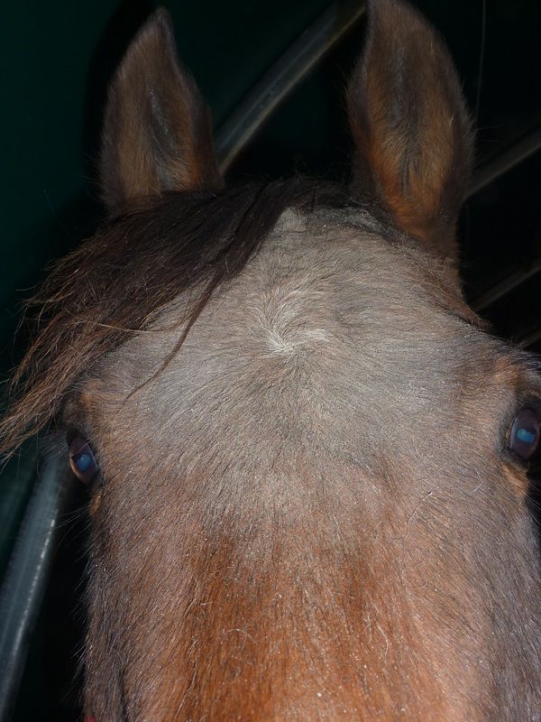 | Dire merci | Visiblement les zones touchées sur la tête ne se sont pas étendues mais 2 nouvelles zones sont apparues sur l'encolure ... Le véto vient mardi. |