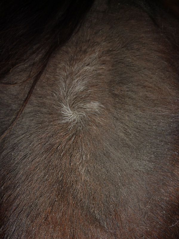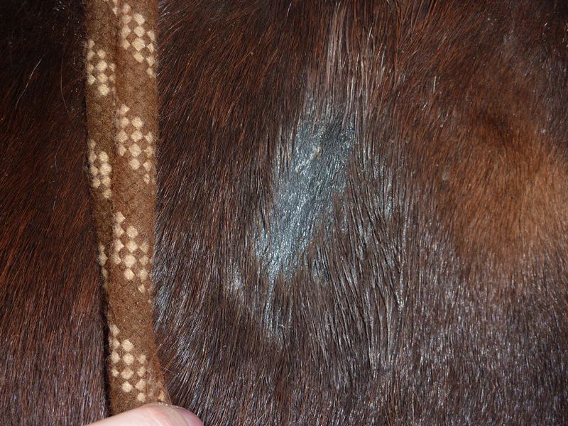 | Dire merci | Est-ce que ça pourrait être la gale ? J'ai une amie dont la jument a eu le même genre de chose l'été dernier, elle va me passer de l'acadrex. Je vais essayer demain et si ça ne marche pas, j'appellerai le véto. |