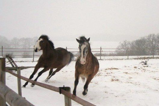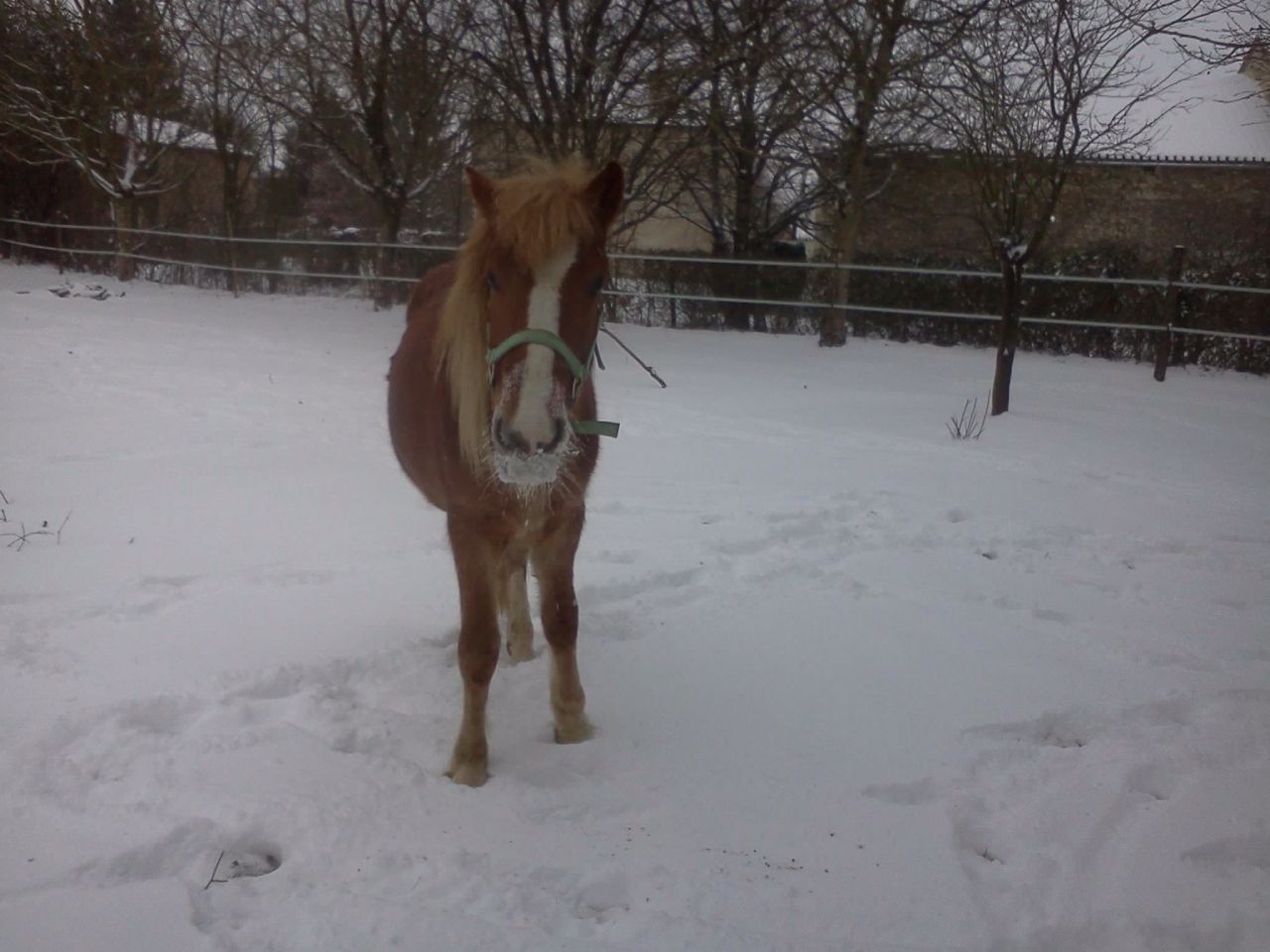 | Dire merci | voila chez nous c'est pareil, tout gelè, plus d'eau à l'écurie on fait le plein dans des bidons à la maison, et je passe matin et soir donner à boire! Les joies de l'hiver! les chevaux ne sortent plus du tout, le terrain c'est du béton mais plein de cratères! ils ne veulent pas se risqué un sabot dehors, heureusement que les stabullations sont grandes! |