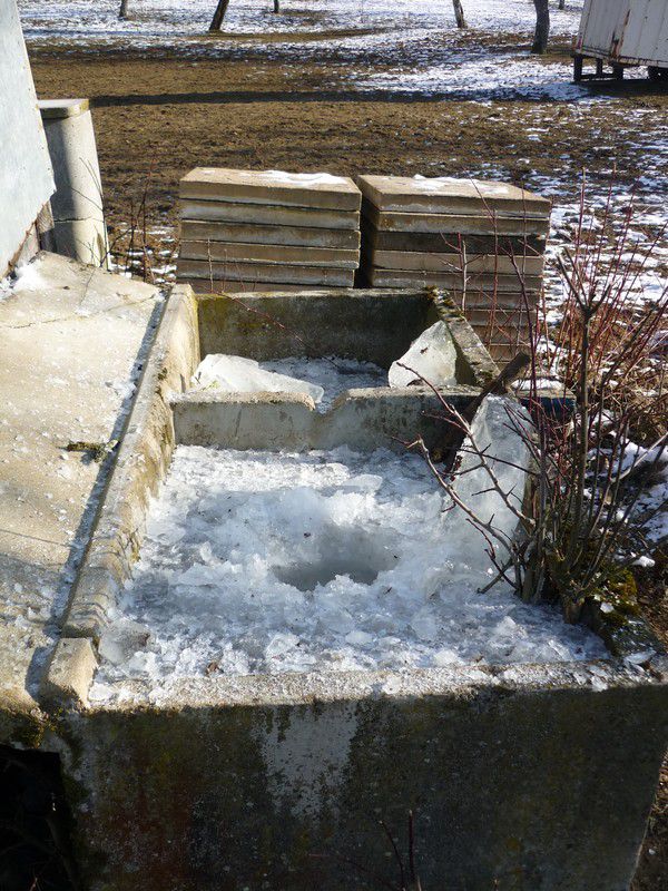 | Dire merci | ben nous y a un stade où la seule chose qu'on a réussit à casser c'est... la baignoire ![]() mais petit redoux, températures moins négatives à partir d'aujourd'hui, on commence à pouvoir ôter lentement les blocs de glace avec de l'eau chaude dans l'abreuvoir |