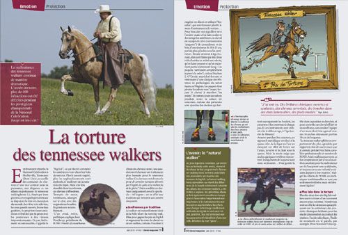 | Dire merci | ils leur enchainent des "plateaux" de bois (ou autre) aux paturons à mon sens il n'y a rien de beau à voir un cheval souffrir |