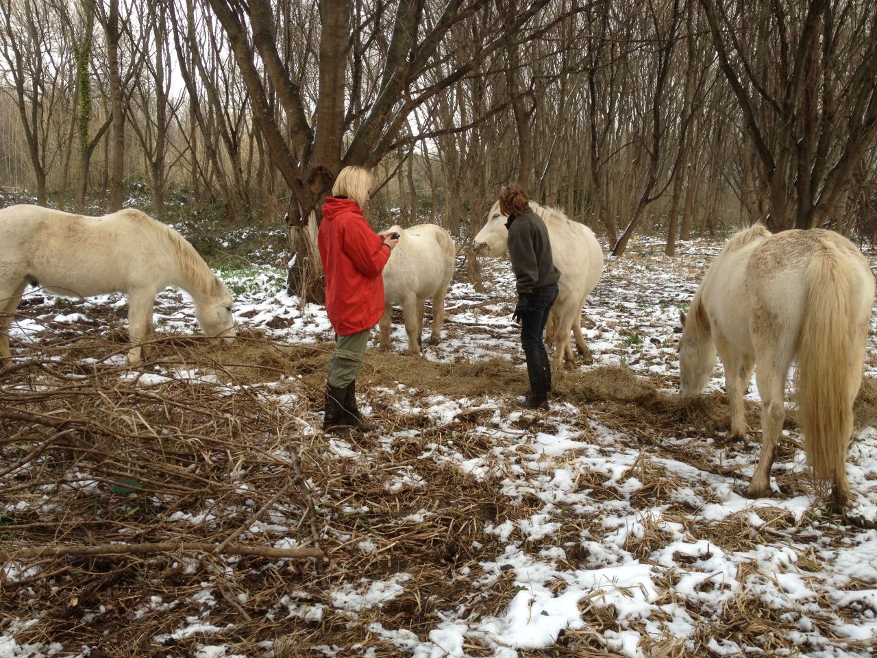 Déconnecté | Pour moi, 2 troupeaux dont un avec l'étalon, 12 chevaux en tout. Pas au pré, mais en semi-liberté dans les marais (prairie, forêt, marécages) sans abris sauf naturels (arbres) sans couverture, ils ont du foin quand (comme aujourd'hui) la neige est abondante, mais ils préfèrent souffler pour la réchauffer et manger l'herbe plutôt que le foin, mais bon, je m'inquiètes peut-être pour rien, mais je préfère, donc je leur mets du foin. Si je mets une couverture à l'un(e) d'eux ou d'elles, il se roule au sol pour essayer de l'enlever. Ils se portent bien, ce sont des Camargues, voilà la différence. Donc, ne pas faire de même avec des chevaux non rustiques. ![]() |