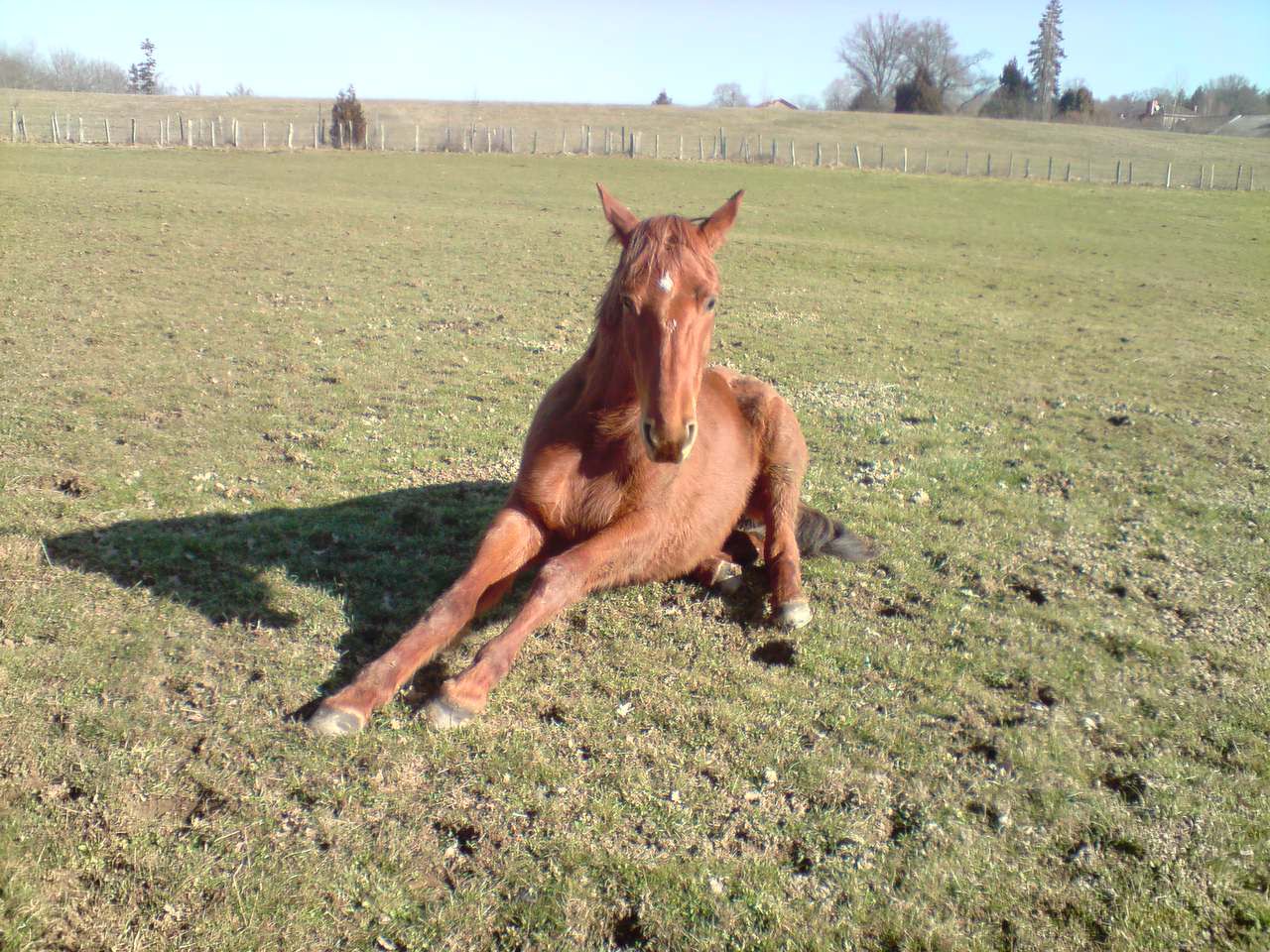 | Dire merci | Oui il le vit très bien car il ne souffre d'aucune douleur.... Et ne glande pas grand chose au final.... Son activité principal c'est jouer avec les copains au pré... On verra plus malheureux comme cheval ![]() |