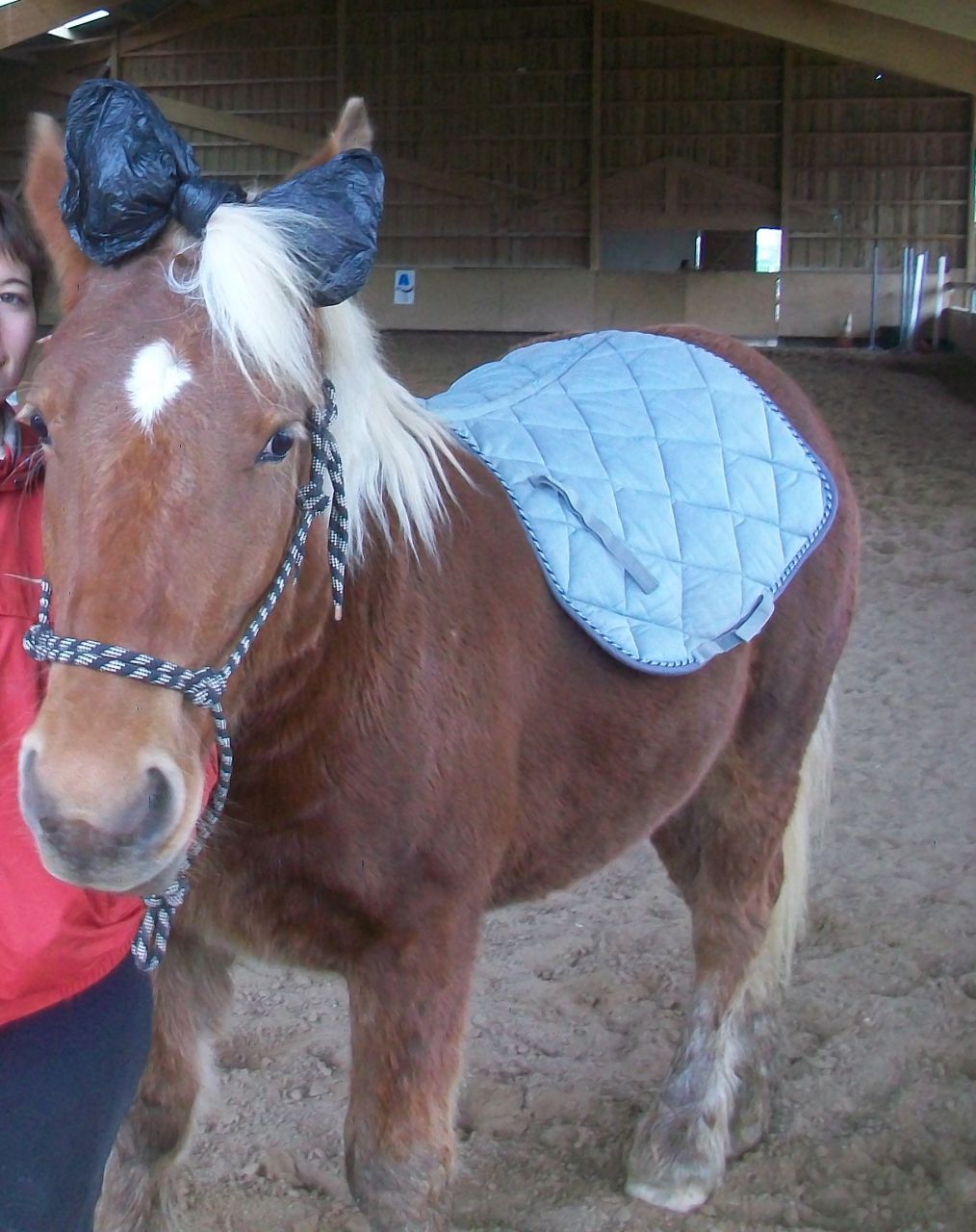| Dire merci | J'ai retrouver une vieille photo ... Spirit testé déjà des choses pour vous quand elle est arrivé , et dont le débourrage par biquette x) ( no comment sur l'état .. Elle venait d'arriver , bourré de vers , parasites ) ![]() |