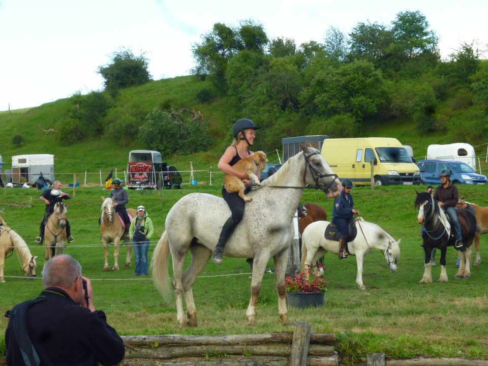 | Dire merci | Non non , retomber sur les pieds ! j'ai d’ailleurs étonner tout les spectateur et franchement, super souvenir, j'en rigole encore ! Trop choupinou ton chien ! Il ne se fatigue pas trop pendant les "grosse " épreuves ? et le gué ! j’appelle sa une rivière moi ! :P |