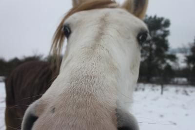 | Dire merci | Aujourd'hui j'ai surtout testé le je vais chercher du foin avec la brouette a l'autre bout des écuries dans le hangar a paille..... Et sur la neige... Ça glisse !!!!!!!!!! |