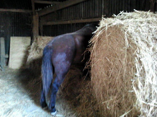Déconnecté | bah en fait , pour l'histoire, d'habitude je laisse le box ouvert le temps d'aller chercher de l'eau pour remplir sa poubelle, là je me retourne et plus de Daisy, du coup je la cherche dans la ferme, et je vois une paire de fesses dépasser du foin ca ne pouvait être qu'elle ![]() |